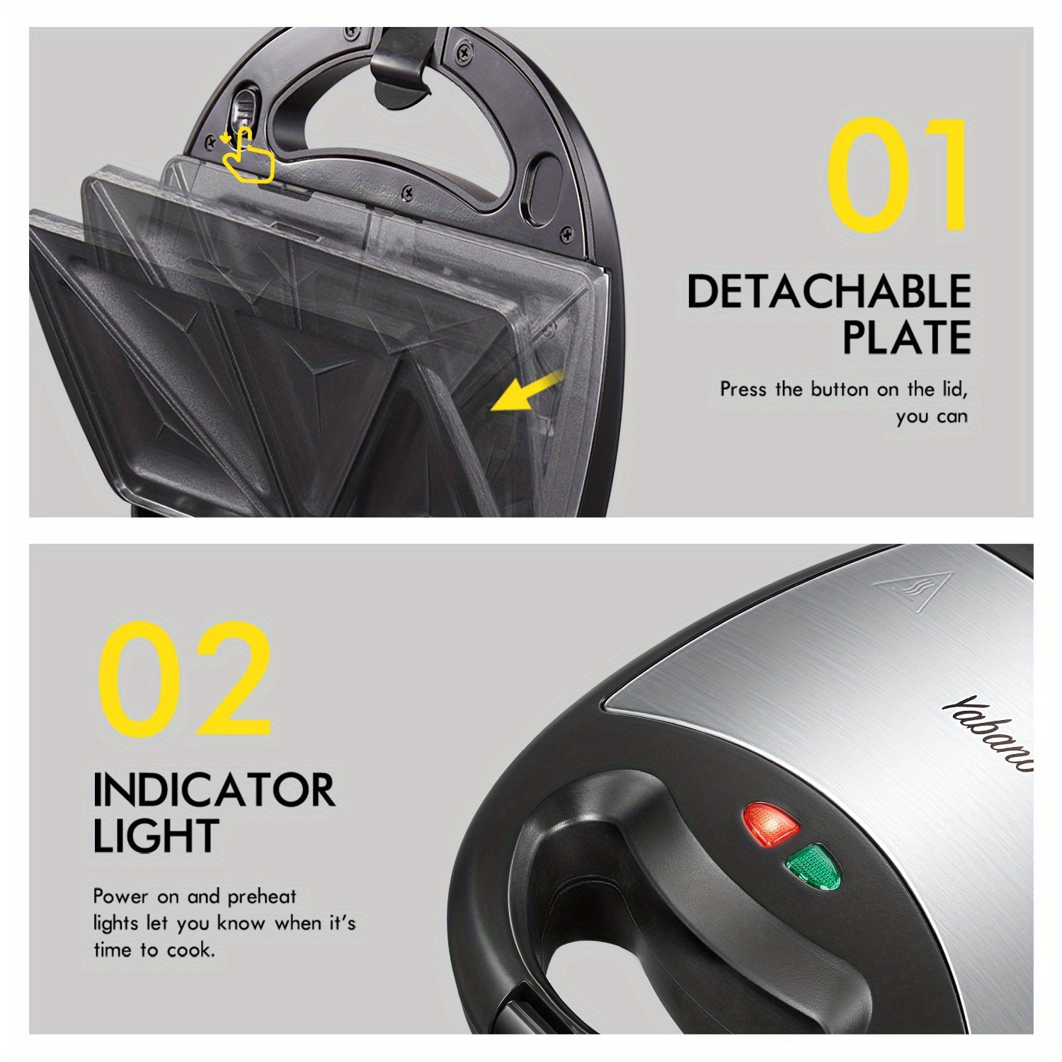 3-in-1 Yabano Sandwich Maker Plus | Waffle Maker, Panini Press & Toaster