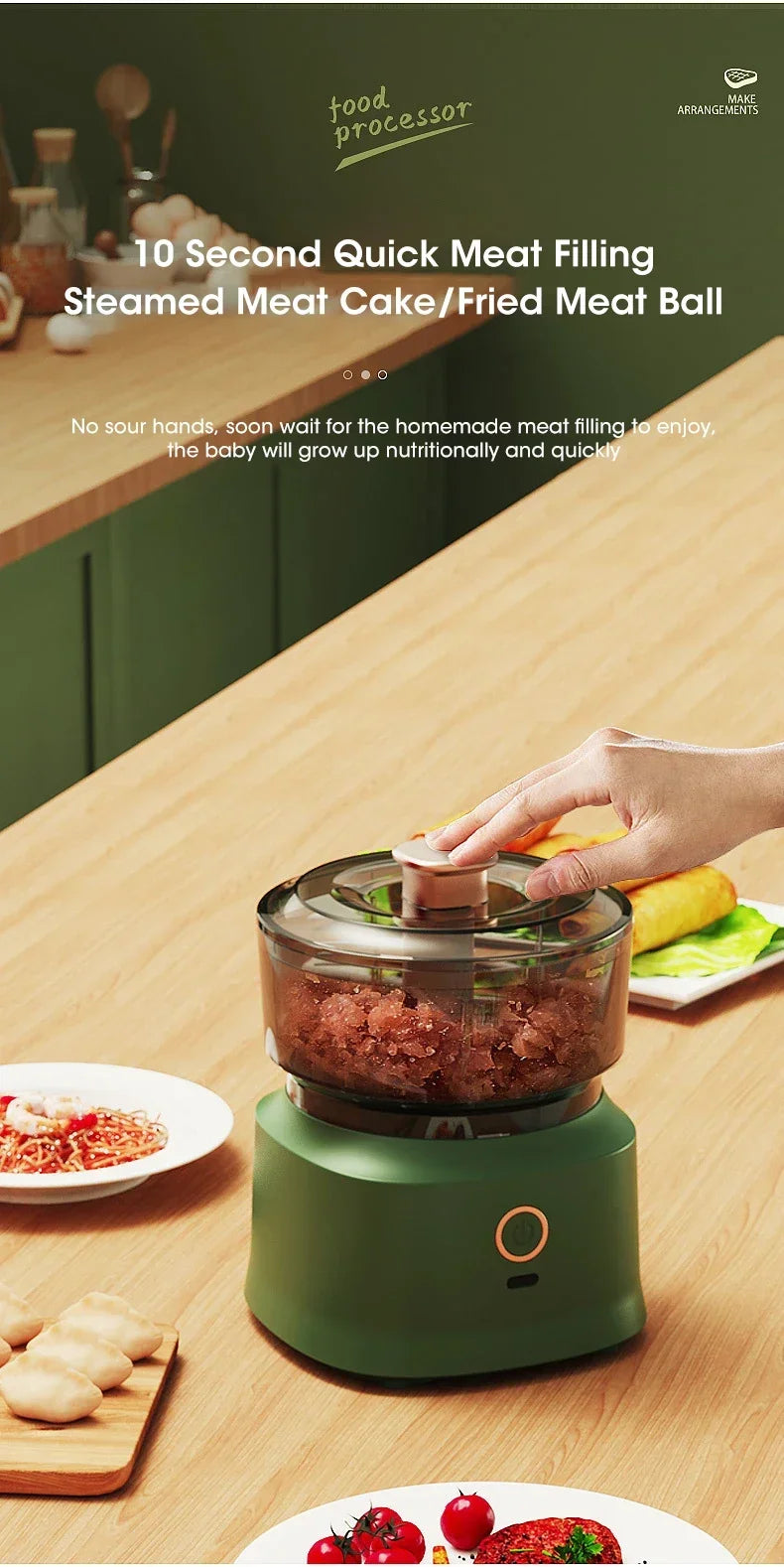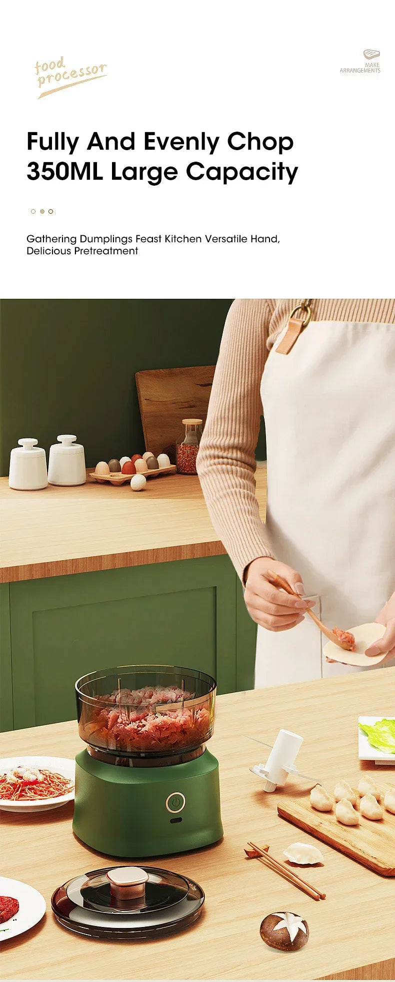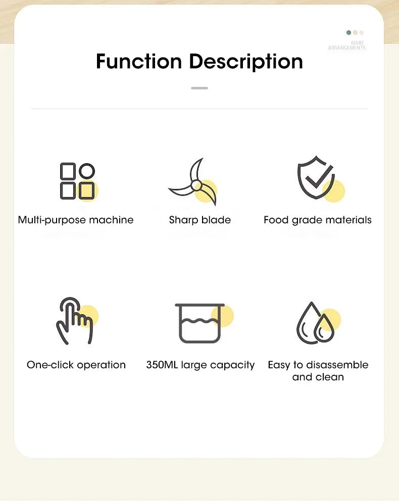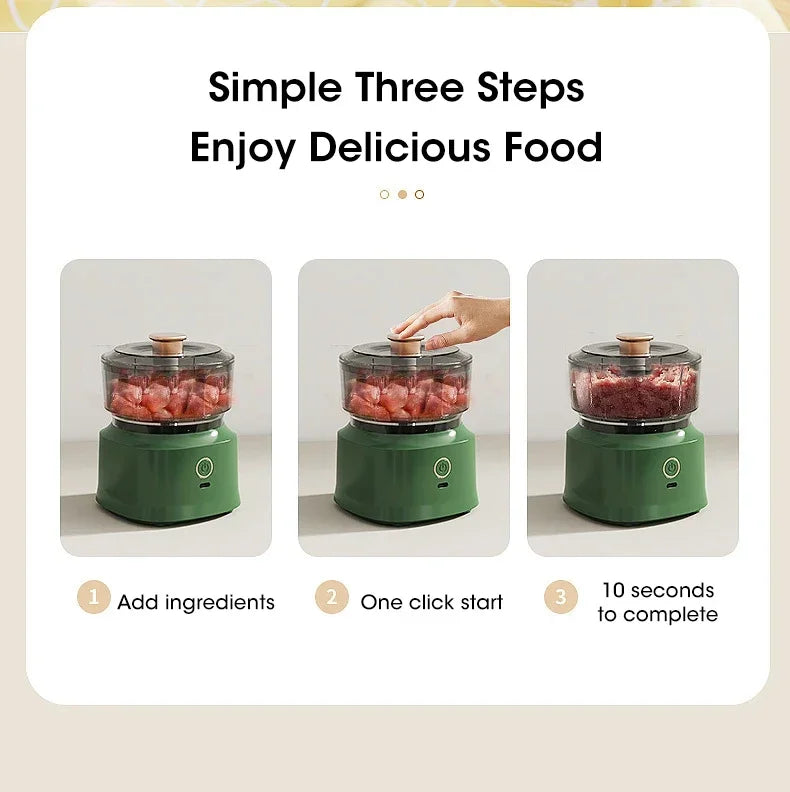 Electric Meat Grinder Garlic Blender Kitchen Food Crushing Multi-function Stirring Vegetable and Meat Mash Usb Charging 350ml