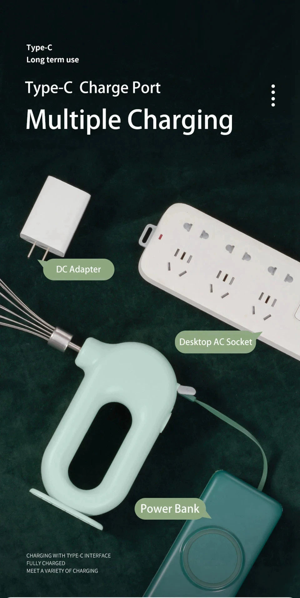 Portable USB Rechargeable Handheld Mixer – Dual Head Stainless Steel Blender